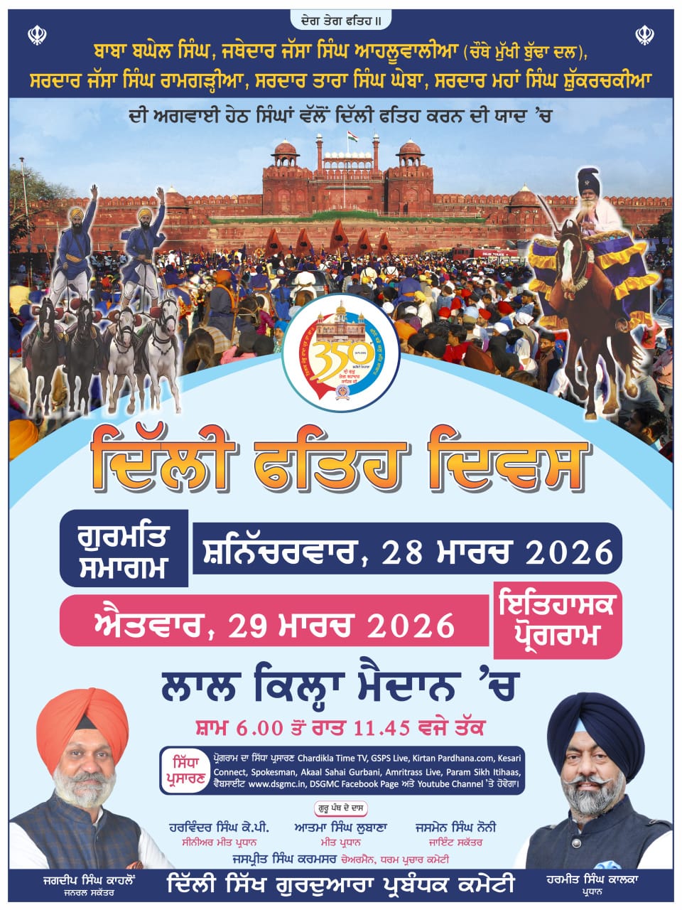 “ ਦਿੱਲੀ ਫਤਿਹ ਦਿਵਸ “ 28-29 ਮਾਰਚ 2026 ਨੂੰ ਸ਼ਾਮ 6 ਤੋਂ ਰਾਤ 11:30 ਤੱਕ ਲਾਲ ਕਿਲ੍ਹੇ ਦੇ ਮੈਦਾਨ