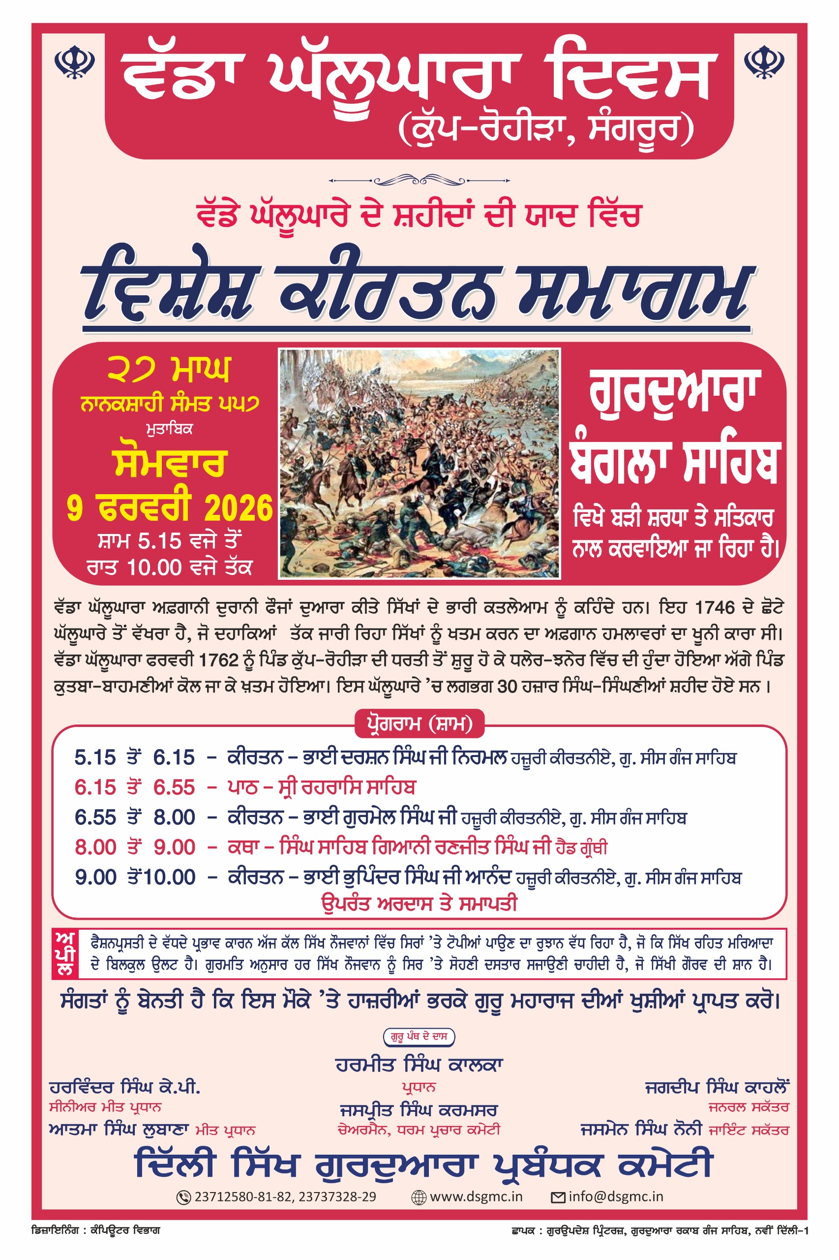 ਵੱਡੇ ਘੱਲੂਘਾਰੇ ਦੇ ਸ਼ਹੀਦਾਂ ਦੀ ਯਾਦ ਵਿੱਚ ਵਿਸ਼ੇਸ਼ ਕੀਰਤਨ ਸਮਾਗਮ