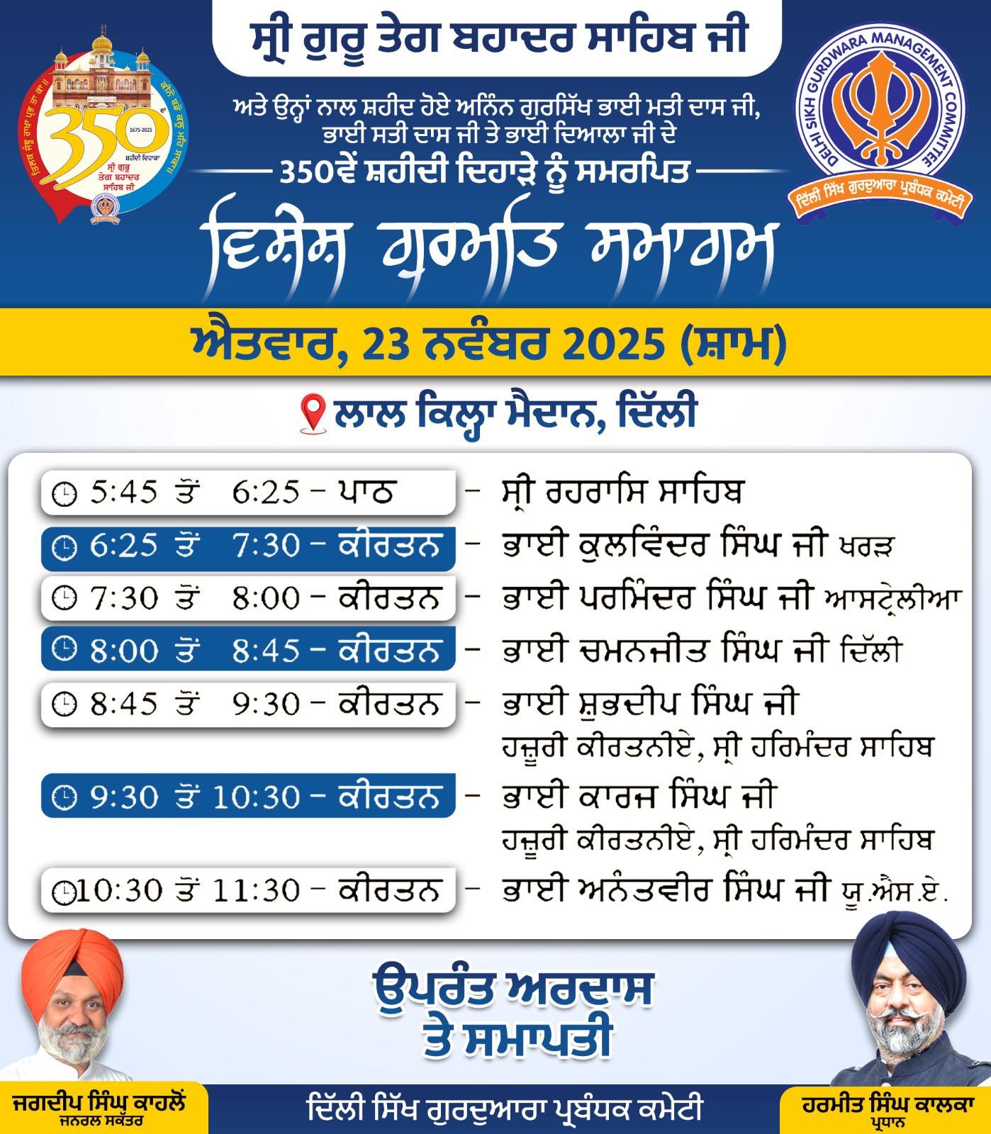 ਸ੍ਰੀ ਗੁਰੂ ਤੇਗ ਬਹਾਦਰ ਸਾਹਿਬ ਜੀ ਦੇ 350ਵੇਂ ਸ਼ਹੀਦੀ ਦਿਹਾੜੇ ਨੂੰ ਸਮਰਪਿਤ ਸਮਾਗਮਾਂ ਲਾਲ ਕਿਲ੍ਹਾ ਮੈਦਾਨ, ਦਿੱਲੀ
