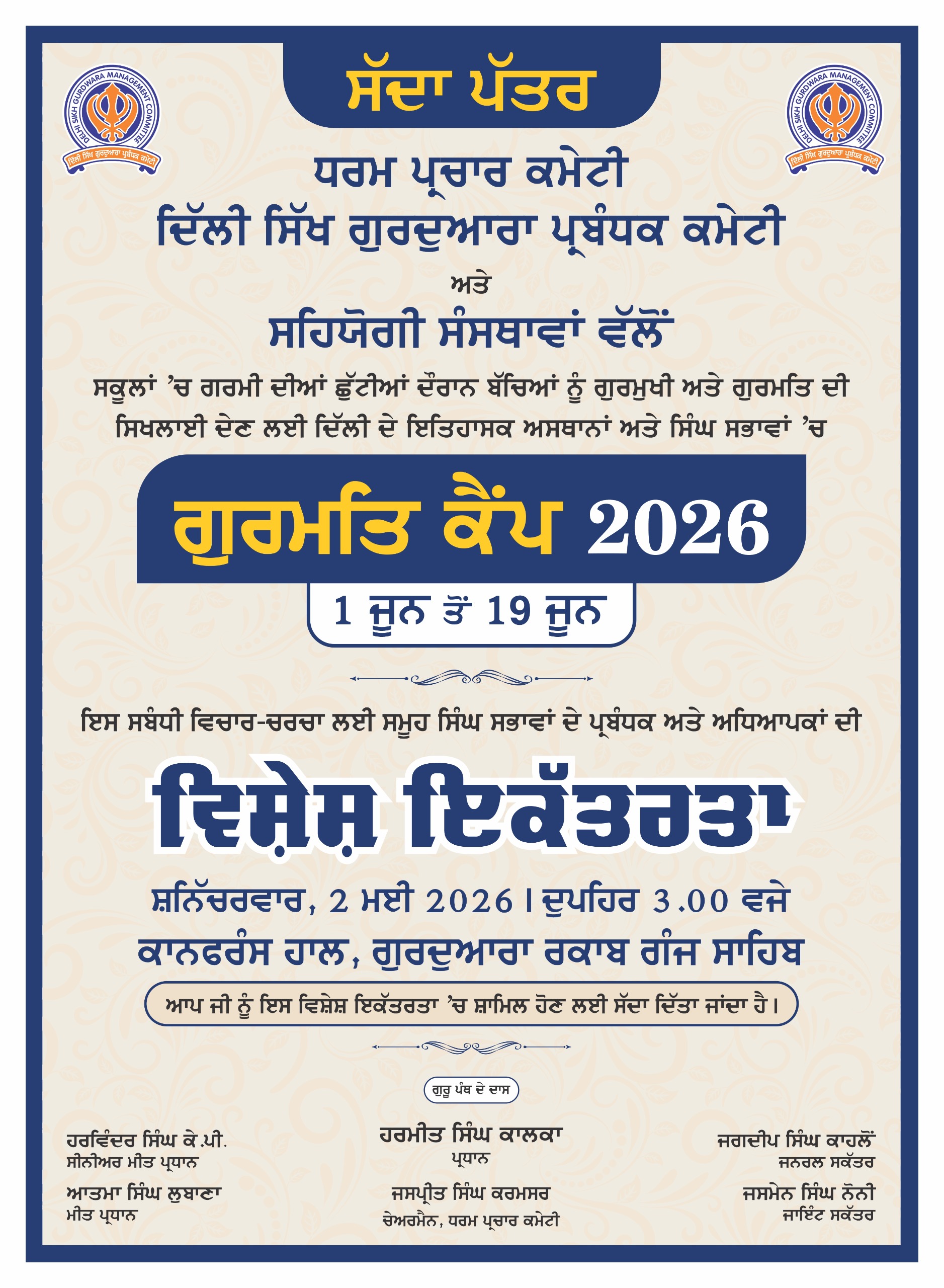 01 ਜੂਨ ਤੋਂ 19 ਜੂਨ ਤੱਕ “ ਗੁਰਮਤਿ ਕੈਂਪ 2026 “